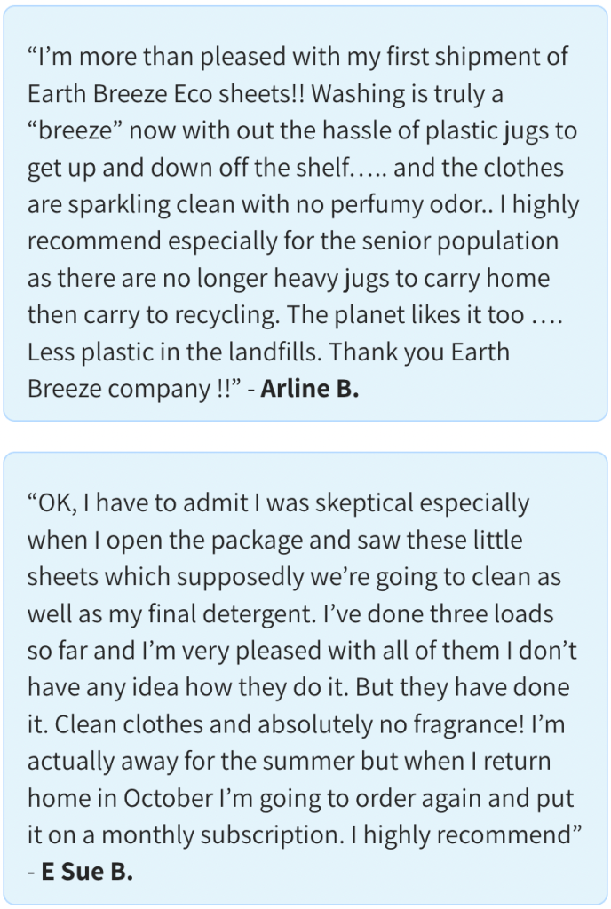 Take a look at what some people have been saying about their Earth Breeze laundry sheets: