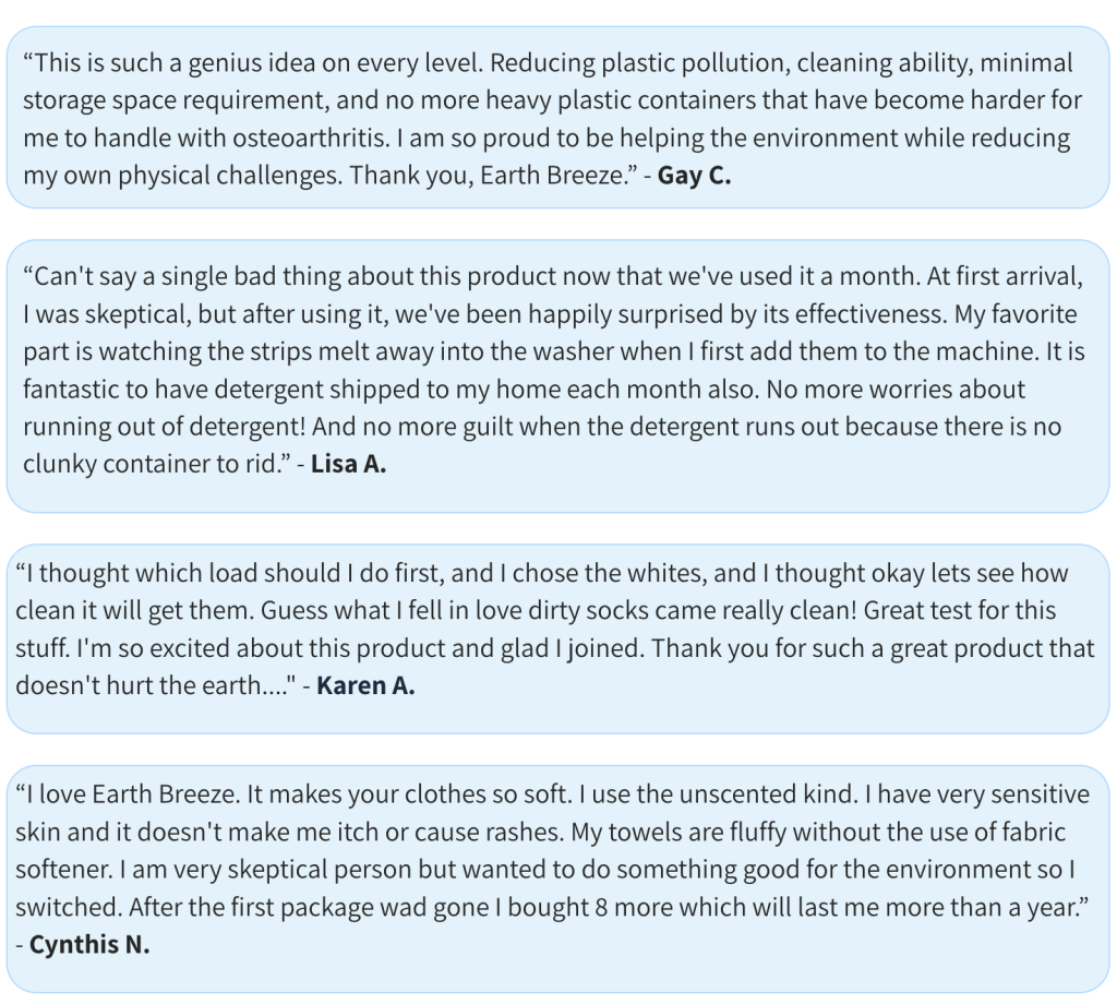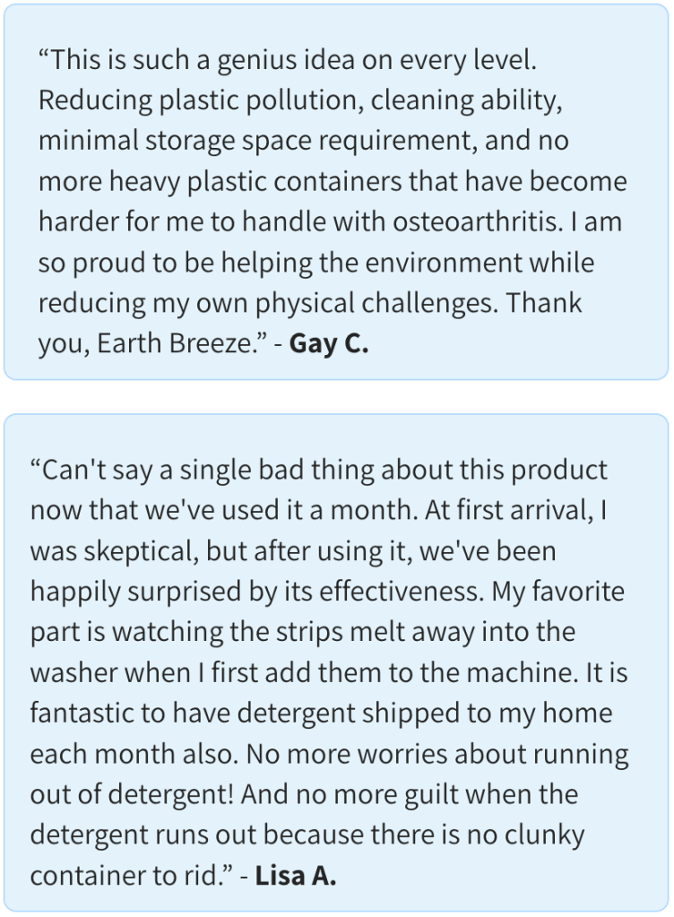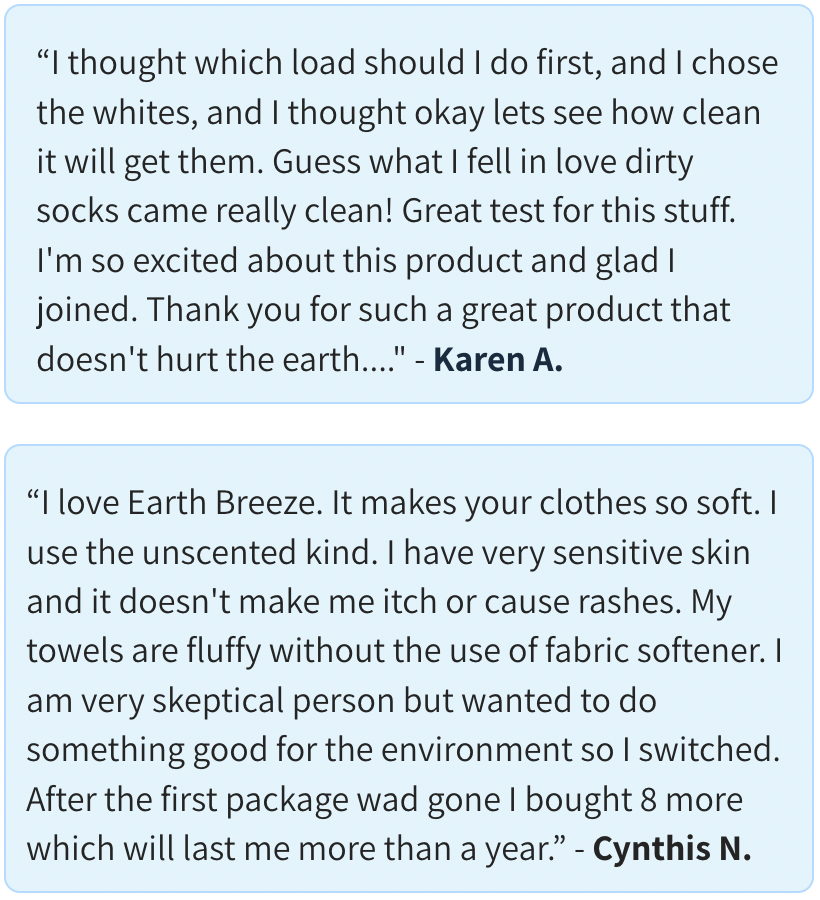 Take a look at what some people have been saying about their Earth Breeze laundry sheets: