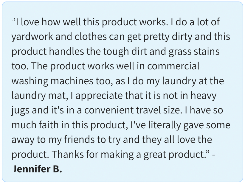 There are thousands of reviews of customers raving about the cleaning power. Earth Breeze lets you experience “true” clean, without harsh chemical residue from optical brighteners leftover on your clothes. It’s all because of its ultra-concentrated formula, which tackles tough stains and odours with ease.