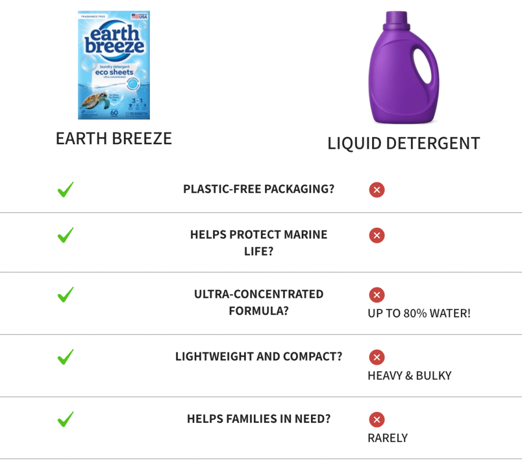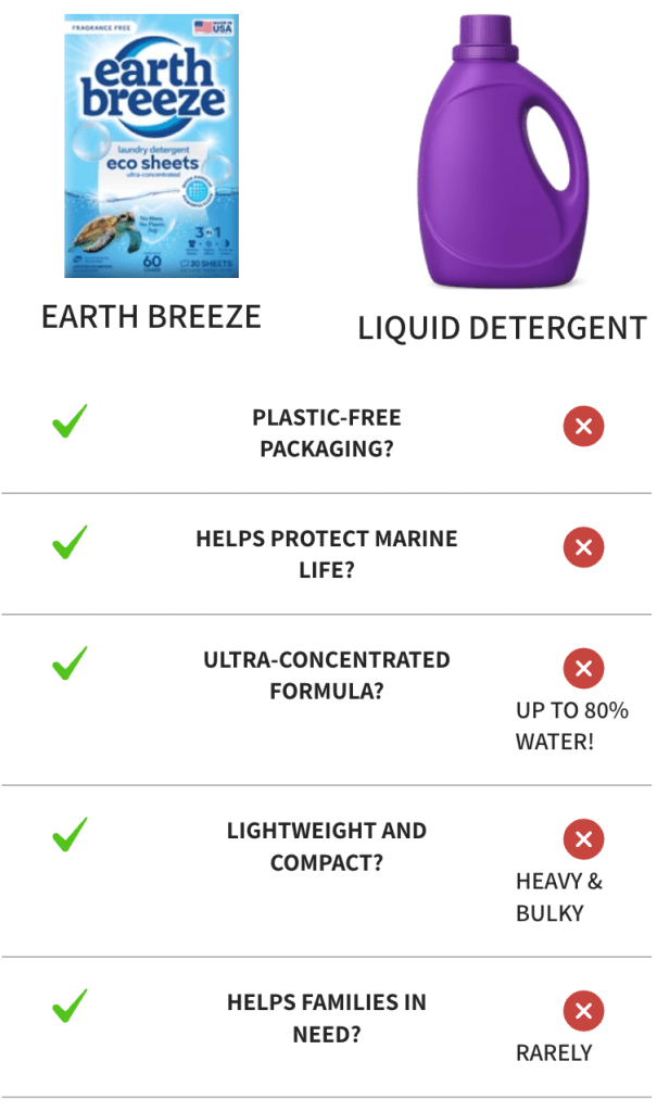 Earth Breeze Laundry Sheets are liquidless detergent sheets that easily dissolve in hot or cold water to provide you a powerful clean.
